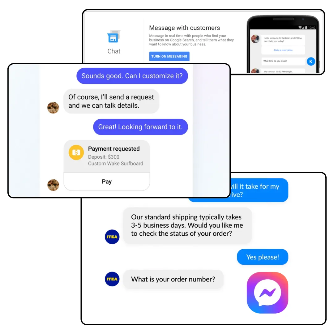 Replies to messages across SMS, website chat, Facebook, Instagram, and Google Business